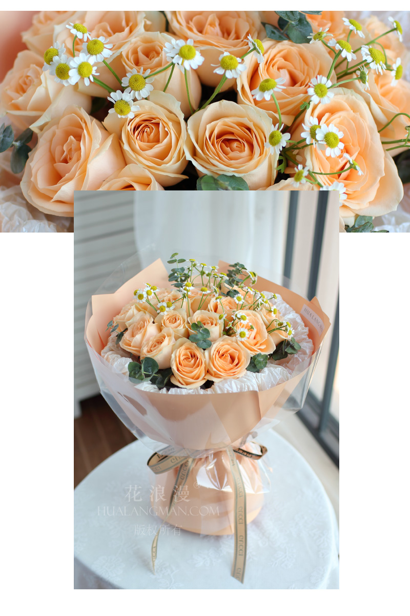 - 19枝香槟玫瑰,洋甘菊点缀;如图