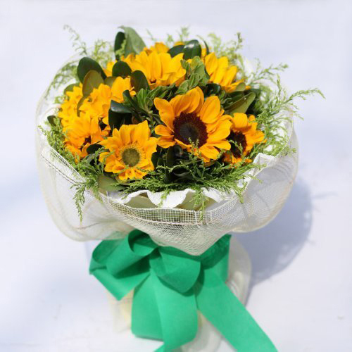 - 10枝向日葵,黄莺绿叶点缀;如图包装