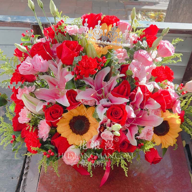 - 本款花语:包含了各种喜庆色彩的花朵,对收花人送上最真挚的祝福