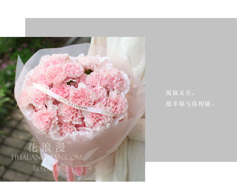 本款花语:康乃馨是最传统的母亲之花,粉色的康乃馨代表感恩。