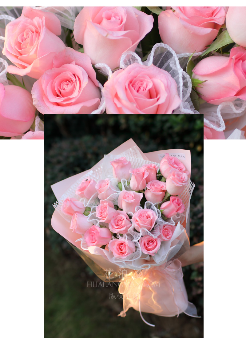 19枝粉玫瑰(戴安娜玫瑰);如图包装