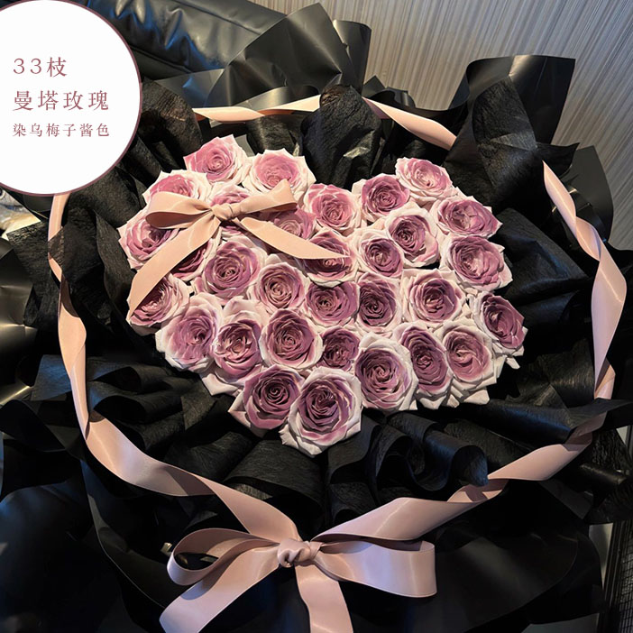 - 33枝曼塔玫瑰花(花朵中心染乌梅子酱色);如图包装;此商品需联系在线客服确认有货再下单