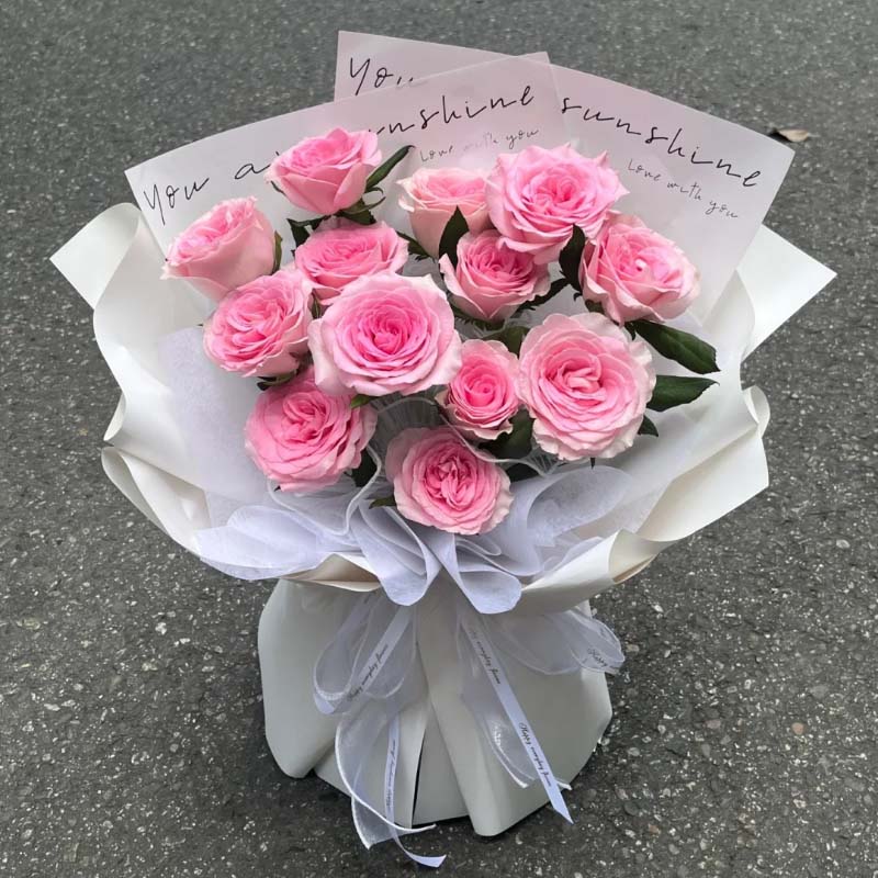 - 13枝洛神玫瑰(若临时缺货则用相似的艾莎玫瑰替代);如图包装