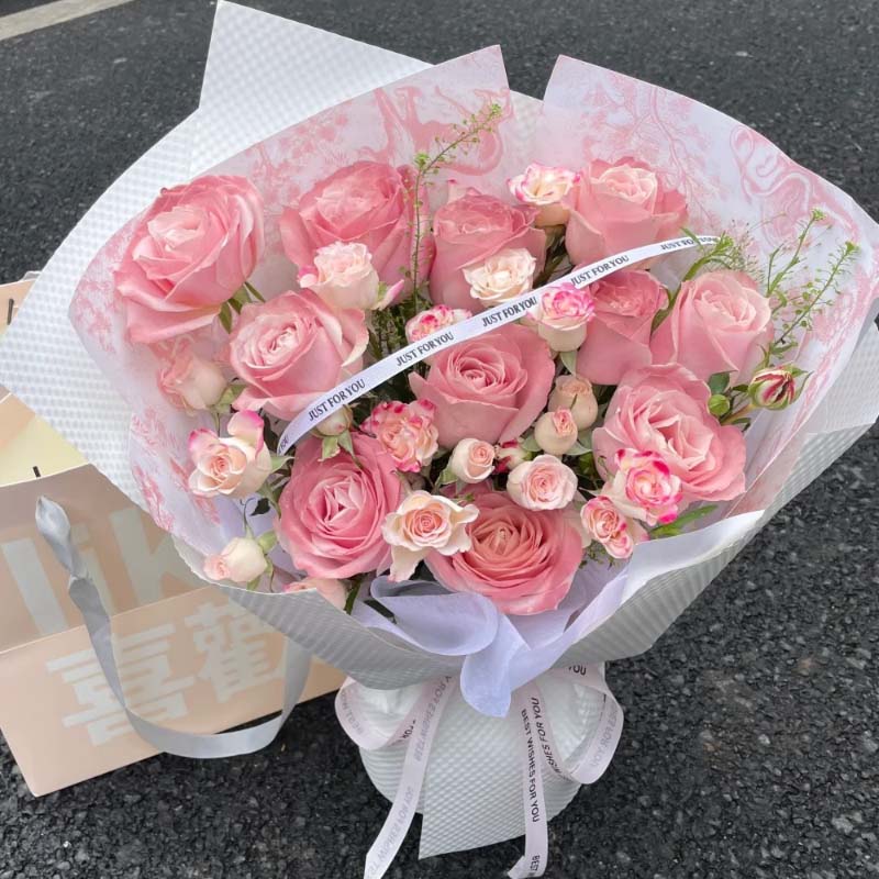 - 本款花语:粉玫瑰的花语为优雅、高贵,也有感谢、初恋的含义。
