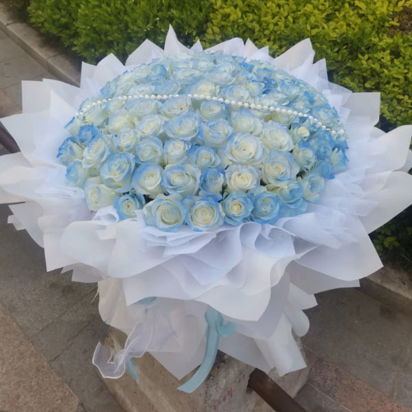- 520朵碎冰蓝玫瑰花束;如图包装