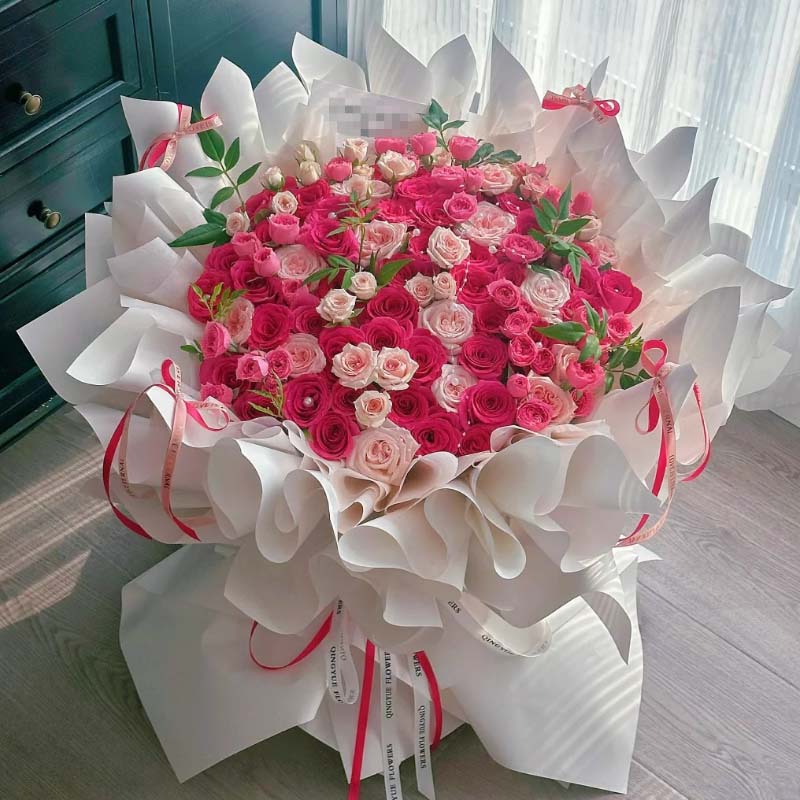- 52枝弗洛伊德玫瑰,33朵粉玫瑰,绿叶(本商品含特殊花材,提前3天预定或与在线客服确认有货才下单);如图包装