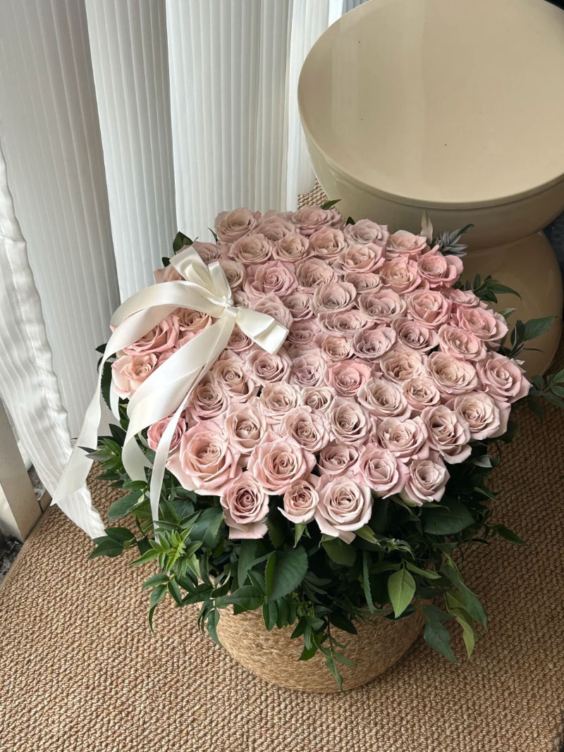 99枝曼塔玫瑰抱抱篮;抱抱篮